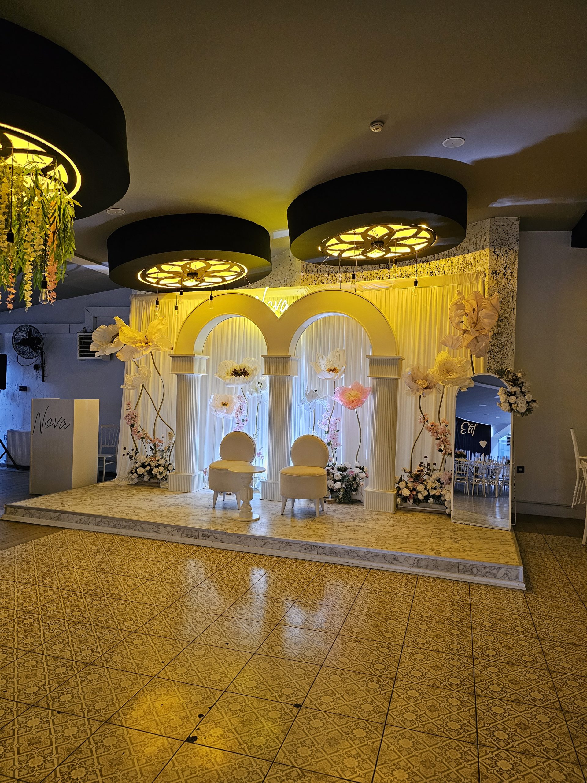19:00 - 23:00 Saatleri ArasıNişan organizasyonlarınız için sunduğumuz eşsiz konseptler, hayallerinizdeki kutlamayı gerçeğe dönüştürür. Geniş ve ferah salonumuzda, özel tasarım süslemelerle dolu bir atmosfer yaratıyoruz. Misafirlerinizi etkileyecek detaylarla dolu bu özel gün, unutulmaz anılar biriktirmenizi sağlar.